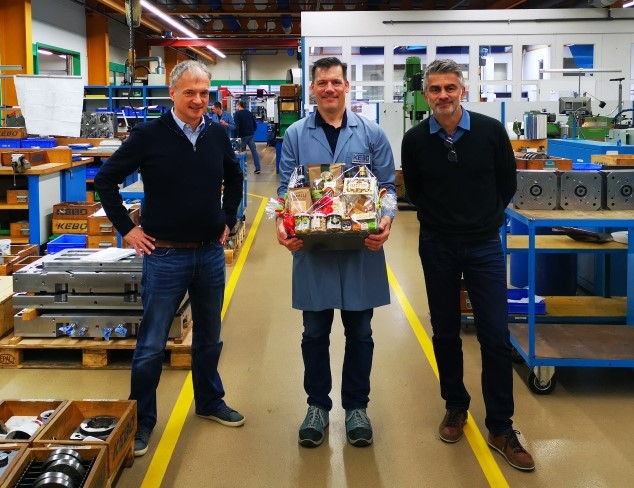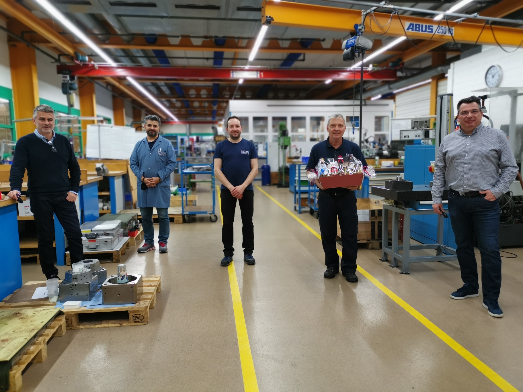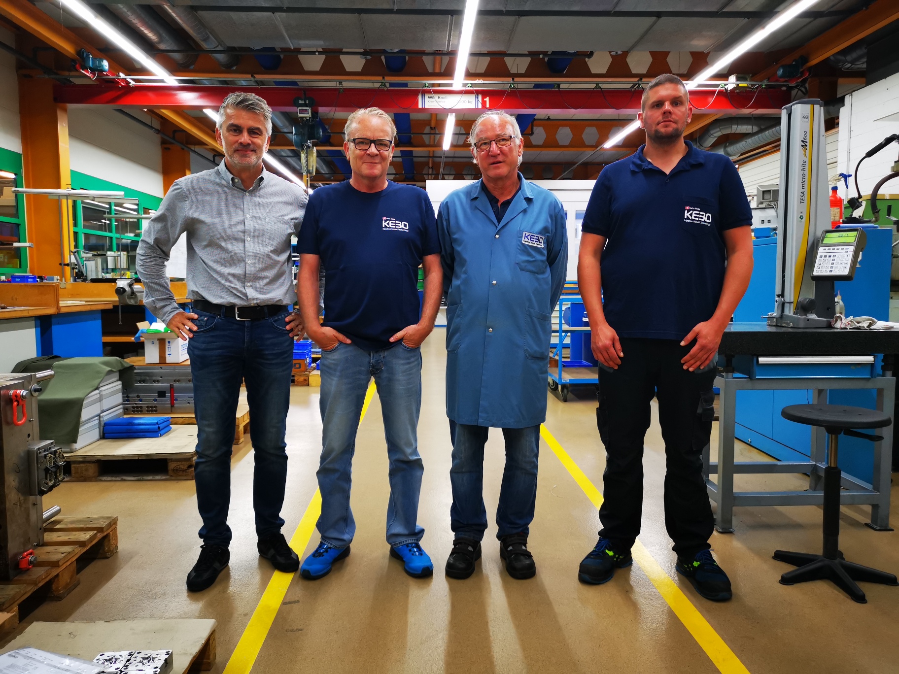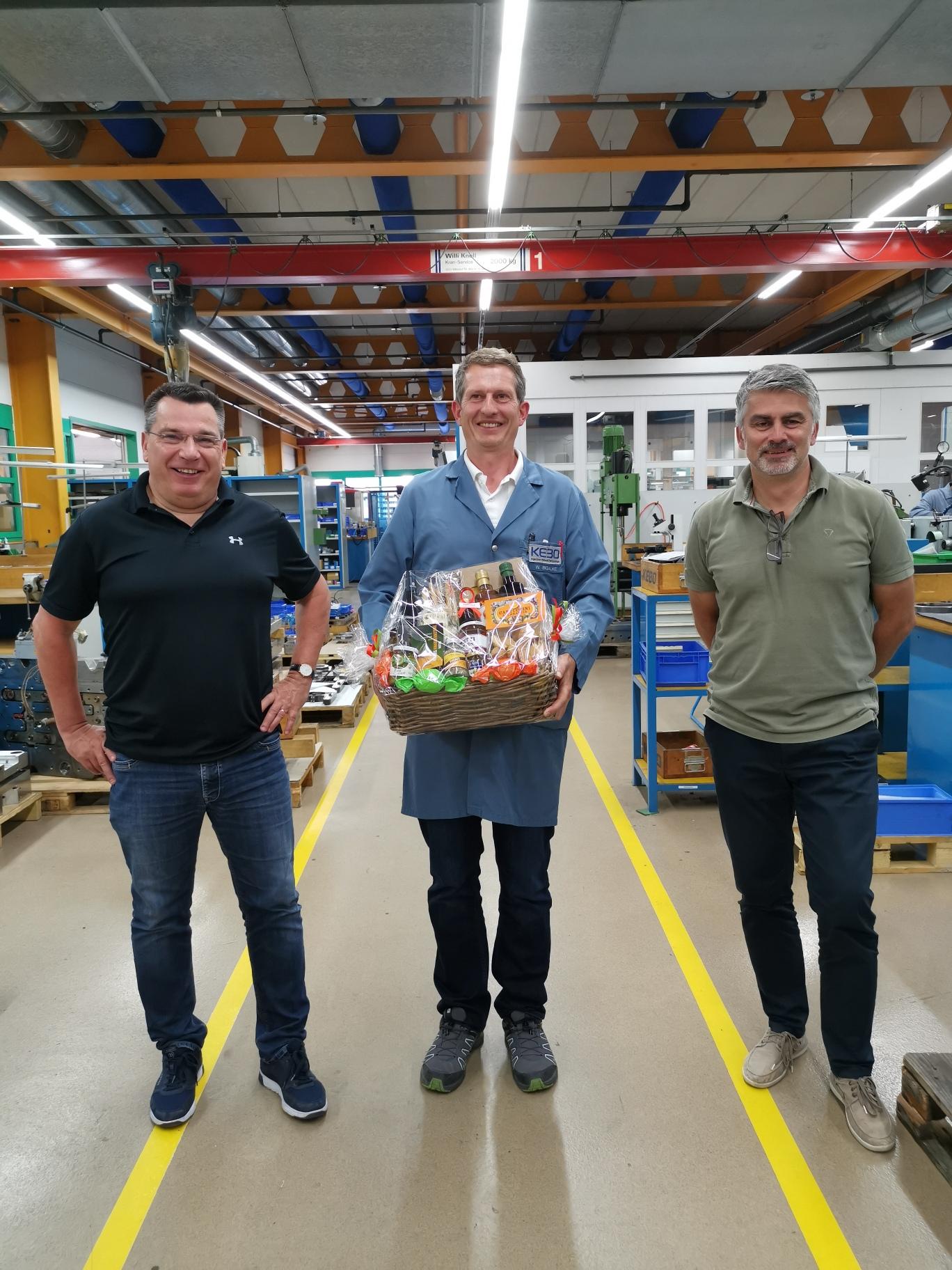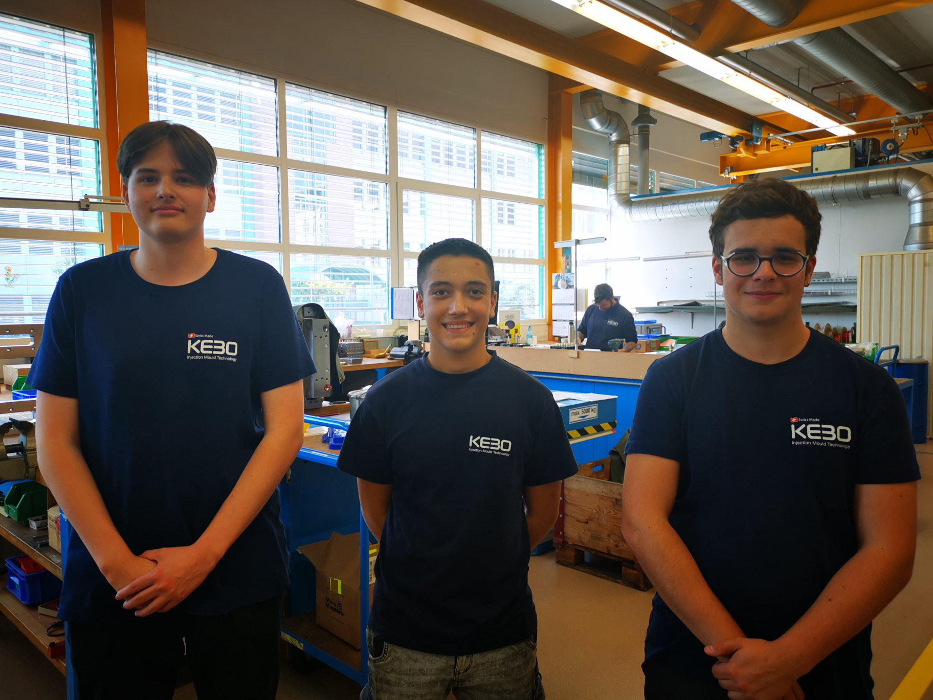 Three employees celebrate their company anniversary: 10, 15 and 40 years of service! Our assembly employee Kurt Bai (second from right) was an employee of the first hour in 1979. With a short interruption, he has always worked for KEBO AG! The company founders Charles Bodenmann and Alfons Keller had the right instinct to hire Kurt after he had completed his apprenticeship as a toolmaker! Experience & apprenticeship: that is KEBO's recipe for success, with employees of many years standing and our own innovative training. We are proud of you!